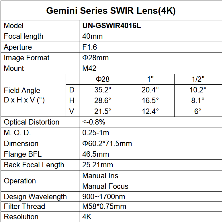 · Длина волны: 900-1700 м· Большая диафрагма, до F1.4